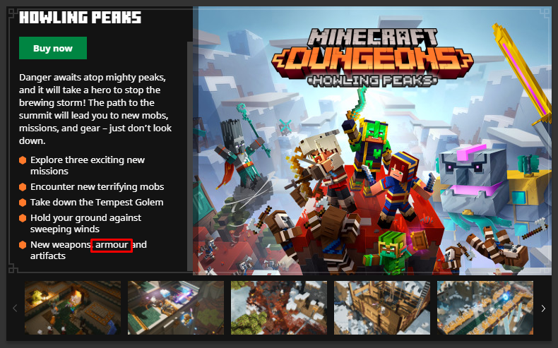 → ❌ Notice how the word "armour", uses the incorrect spelling for the EN_US language.