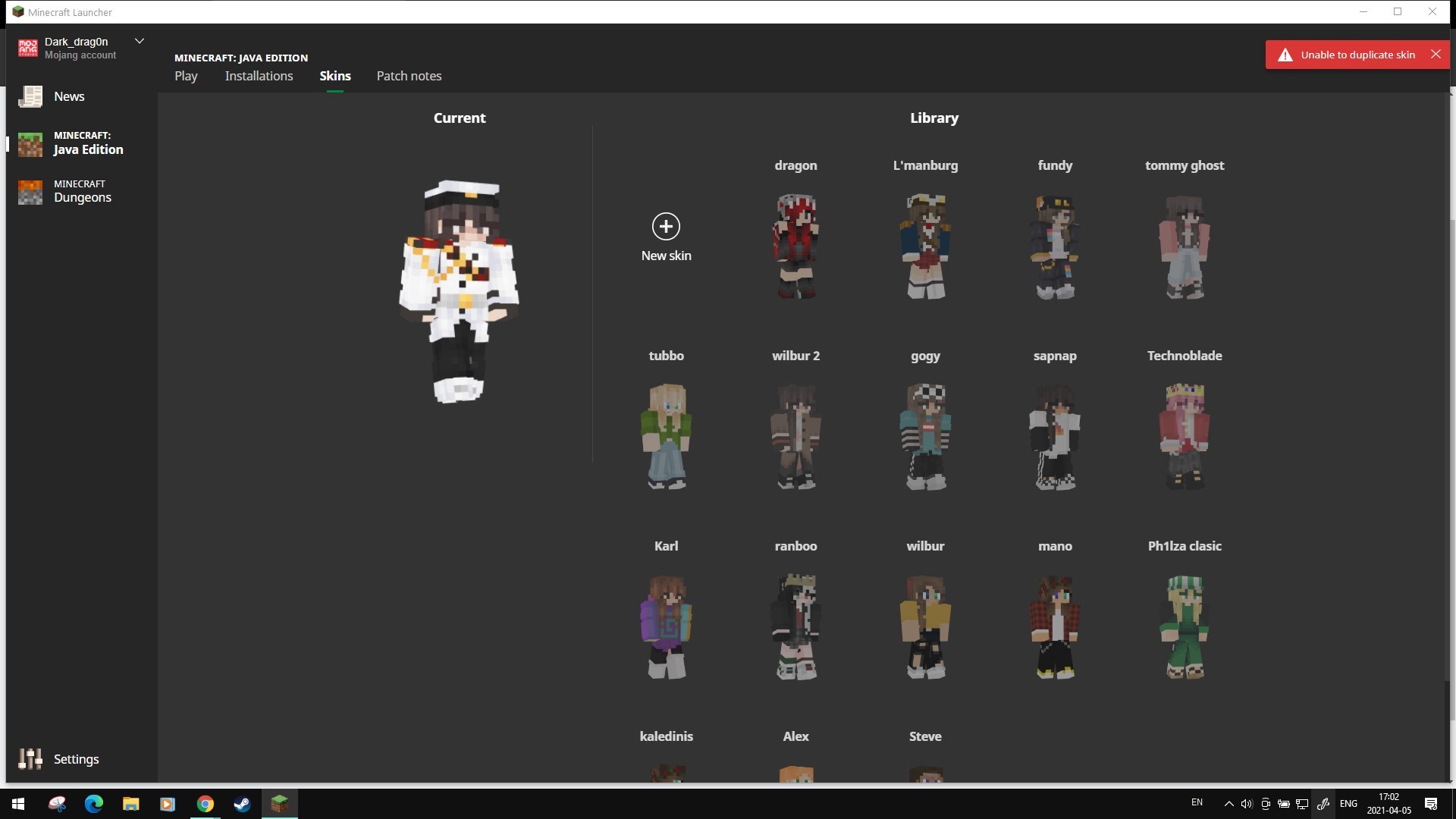 when i try to duplicate my skin or save it or save and use it say when i need to duplicate "unable to duplicate skin" and when i try to save and use or save it say."unable to save skin"