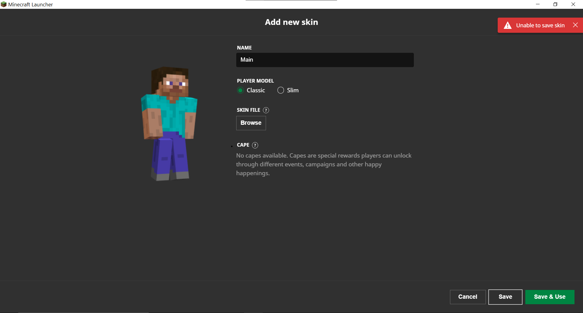 Ok so, I have an issue ever since i got the launcher, which is like a week back. I am not able to add my skins to the library or even save and use other skins. I have also checked all the forums and none of them have a solution to it.