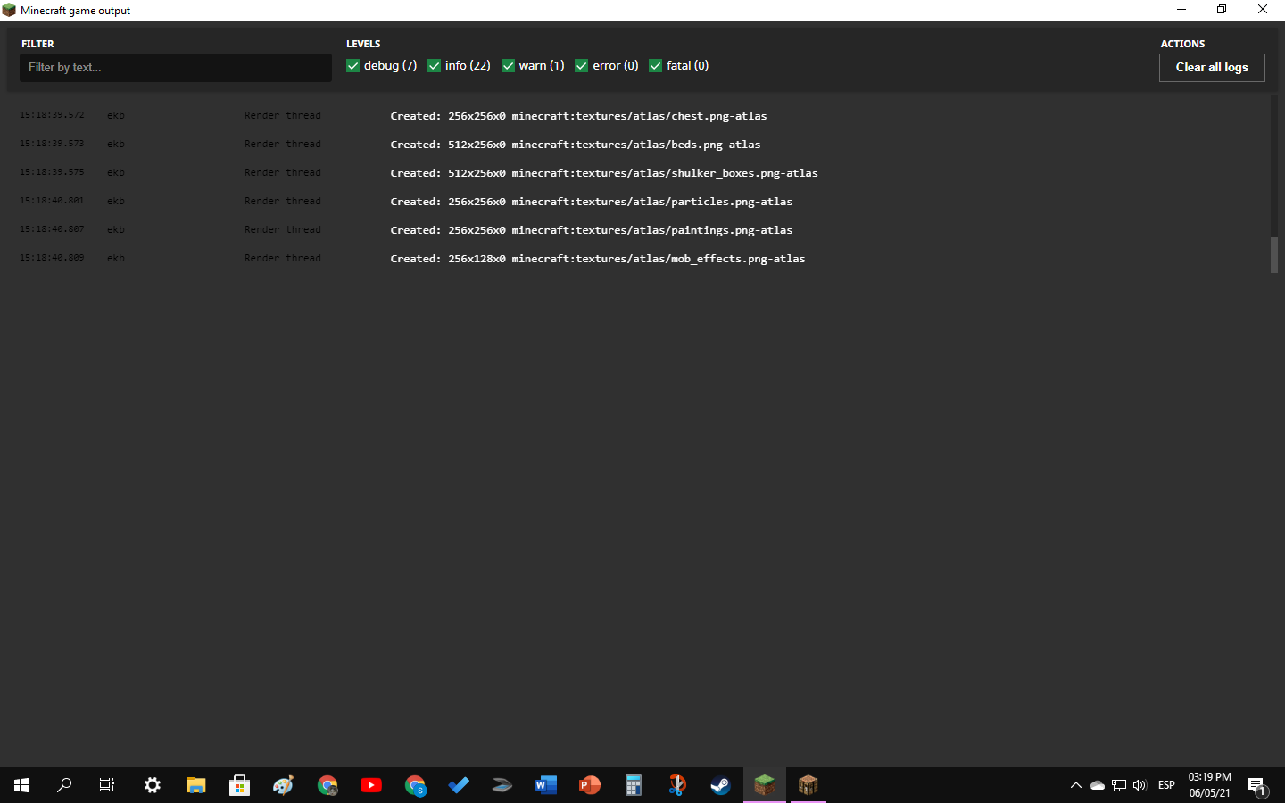 Whenever I launch Minecraft with "Open output log when Minecraft: Java Edition starts" enabled, the window appears but compresses the debug messages into the upper third of the interface.