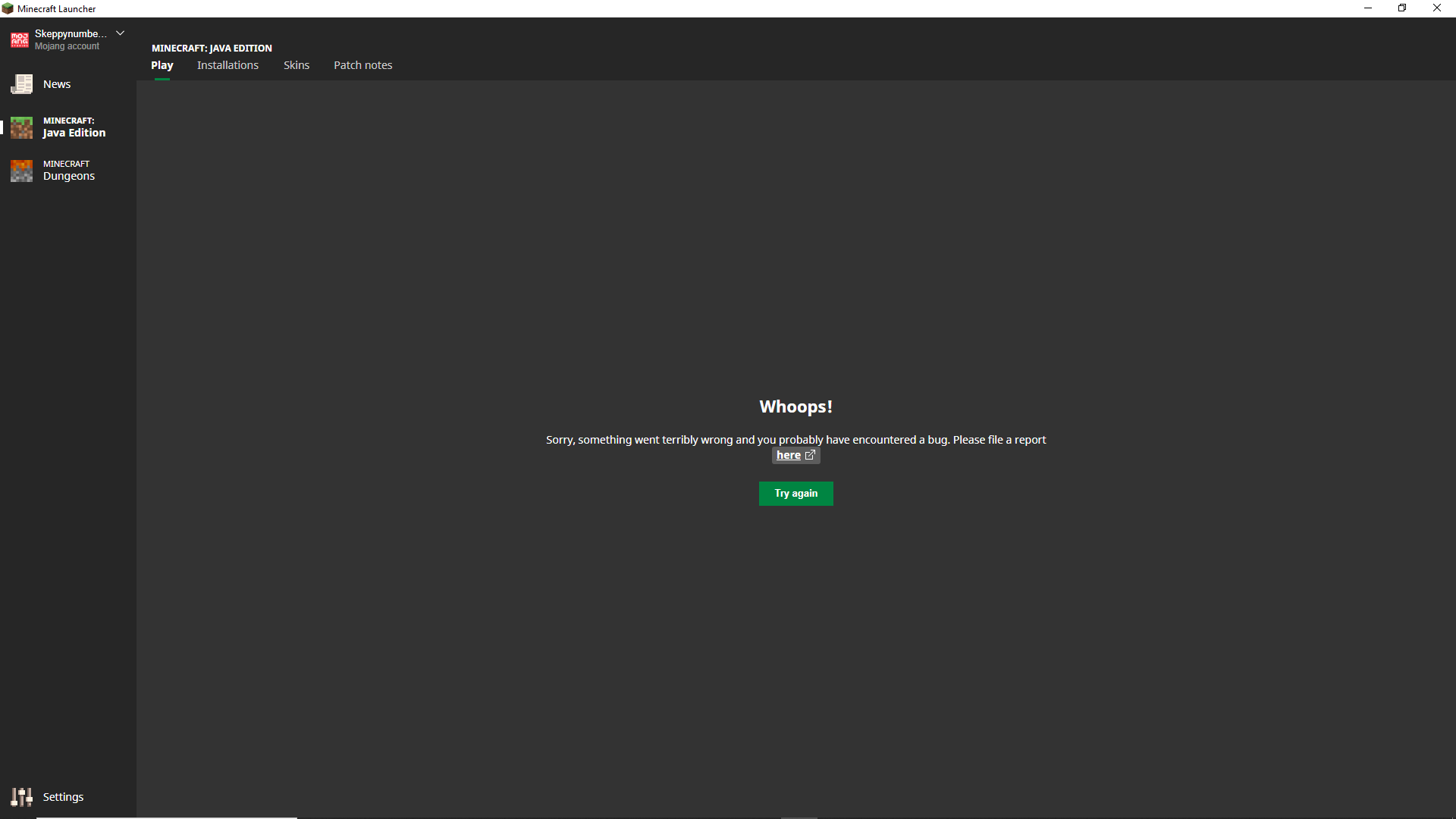 It says whoops and I try to delete minecraft and re install But it doesn't leg me uninstall minecraft