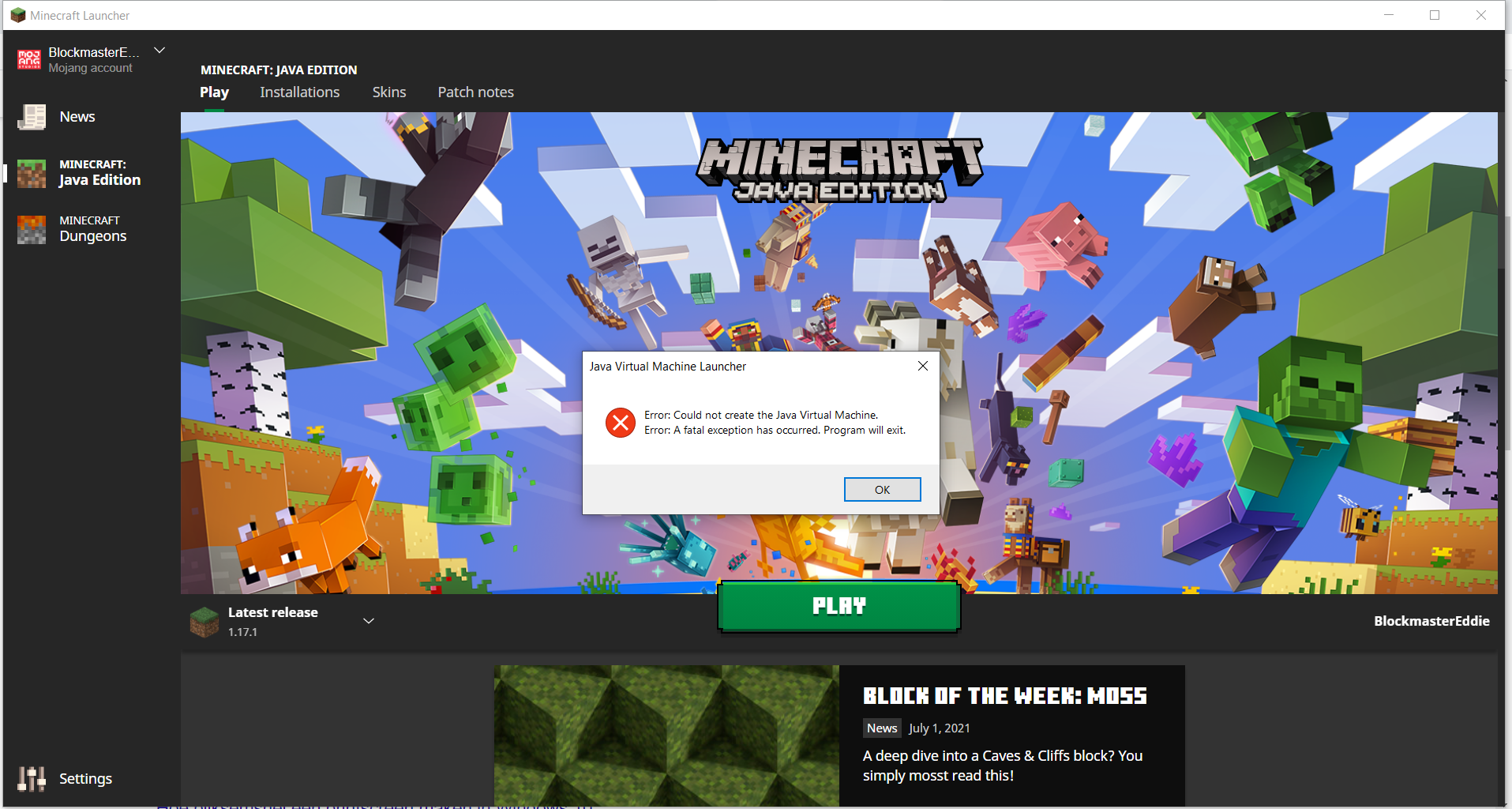 i can't open minecraft 1.17 and get these crash reports and this is the link to the log of the crash: