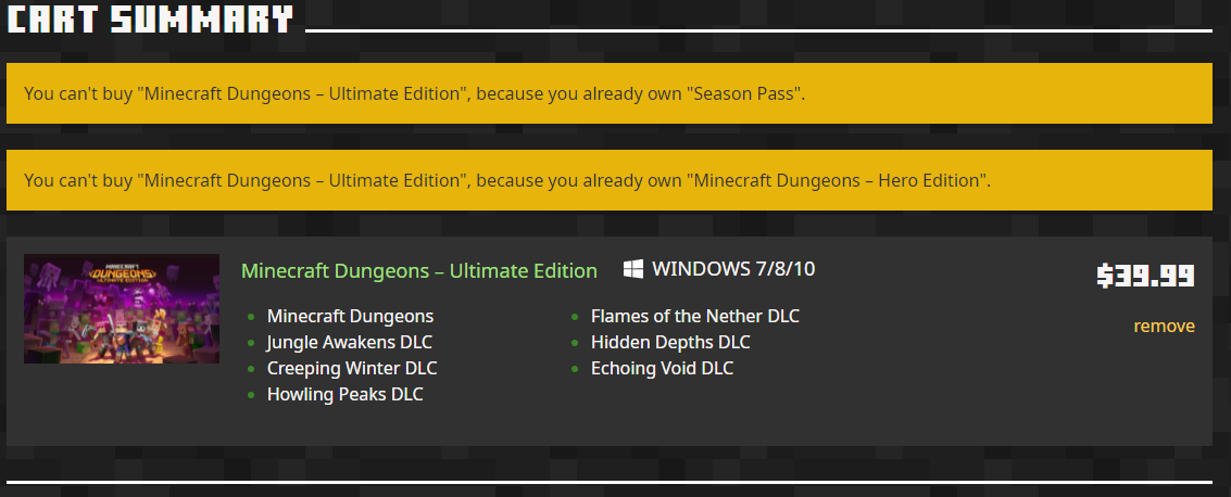 When I try to purchase the bundle on minecraft.net again, I am taken directly to the checkout page: