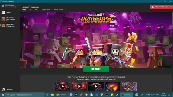 I bought Minecraft Dungeons - Ultimate Edition for Minecraft launcher yesterday and it worked fine. Today I logged in and saw a button saying Repair. I clicked it multiple times over a time period of 30 minutes. Every time it would say Game not repaired. So I uninstalled it and tried to re-install it but the same thing "Game not installed, action interrupted or not completed.". Please help me, I don't have a lot of money so this was a big purchase for me. Thanks in advance.
