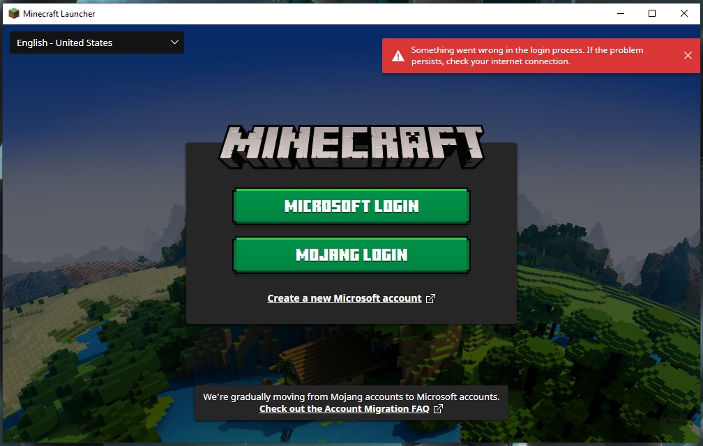 I can not log in to the Minecraft Launcher! I see the following error: "Something went wrong in the login process. If the problem persists, check your internet connection."