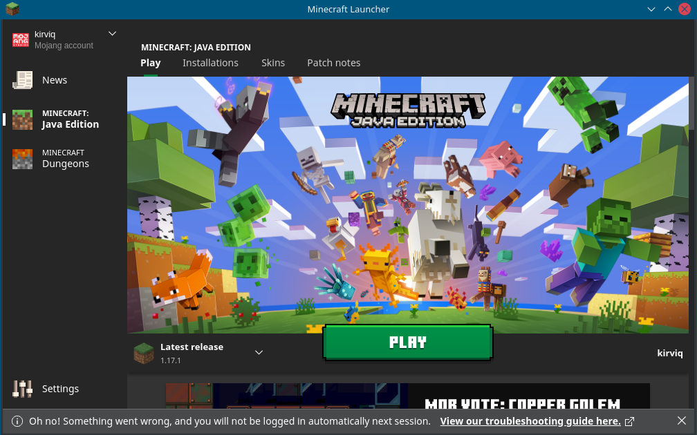 And to mock me further, clicking on the "View our troubleshooting guide" link leads to a 404 page. (https://help.minecraft.net/hc/de/articles/4408668374925)