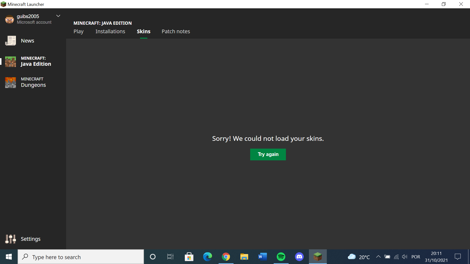 Since 1.17.1 dropped, the launcher opens in my account with the xbox account name, with no minecraft, and i have to change to the normal account. In that account, my account, the skins became unavailable always saying "Sorry! We could not load your skins.". The multiplayer also stopped working. Whenever i go to a server, private or not, it says "Failed to login: null", and i canΒ΄t enter it.Β
