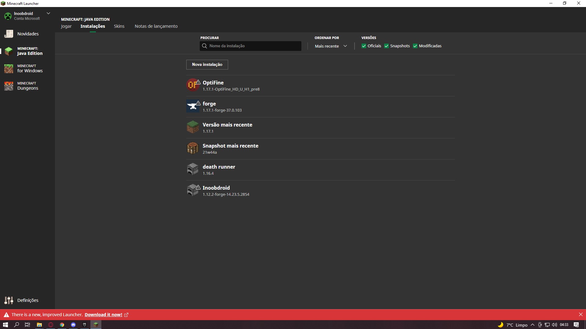 So i install the new launcher via windows app but the new app doesn't recognise the old versions that i have.