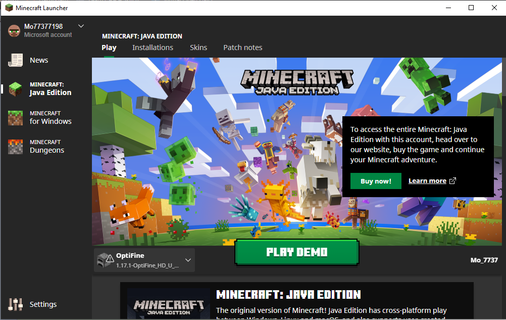 I switched to the new launcher about a week ago. I logged into my Microsoft account (which I transferred to earlier this year). Normally it would just say "play" on the green button. But it now says "play demo" and it also has other prompts for me to "buy" the game.