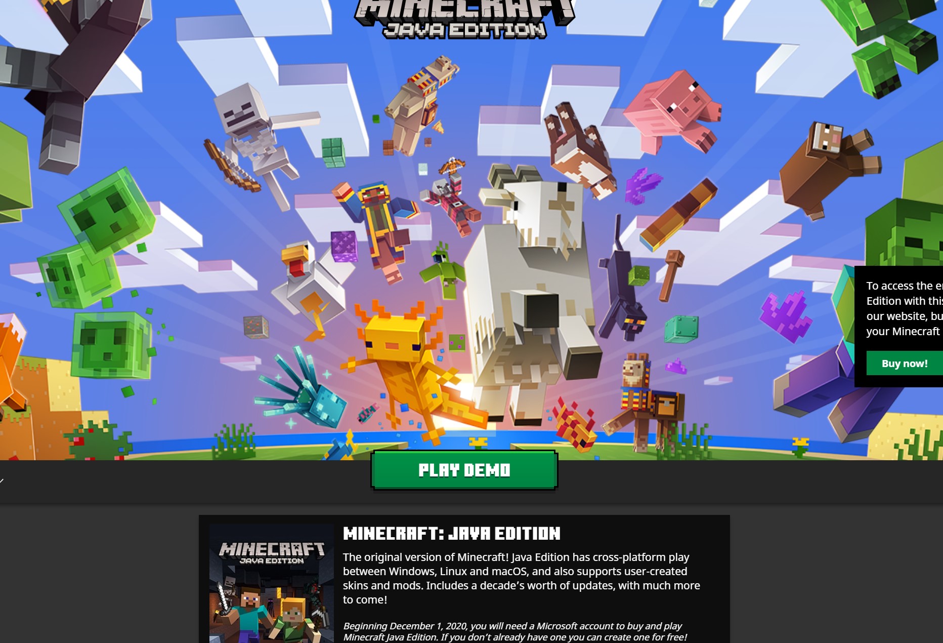 Today I downloaded Minecraft Launcher from Microsoft Store but after login into Microsoft, the account launcher say "Play Demo" for the java version and "Buy Now" for Dungeons and Bedrock.