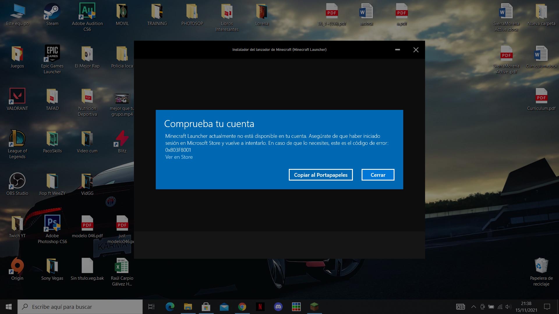 Minecraft Launcher is currently not available on your account. Make sure you are signed in to the Microsoft Store and try again. In case you need it, this is the error code: 0x803F8001.