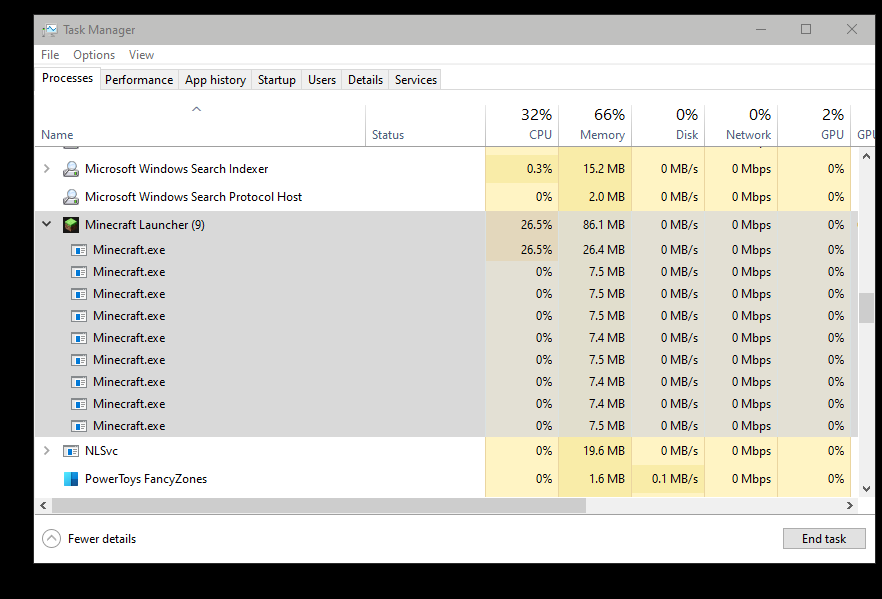 -the process "Minecraft Launcher" and "Minecraft.exe" still run in Task Manager.