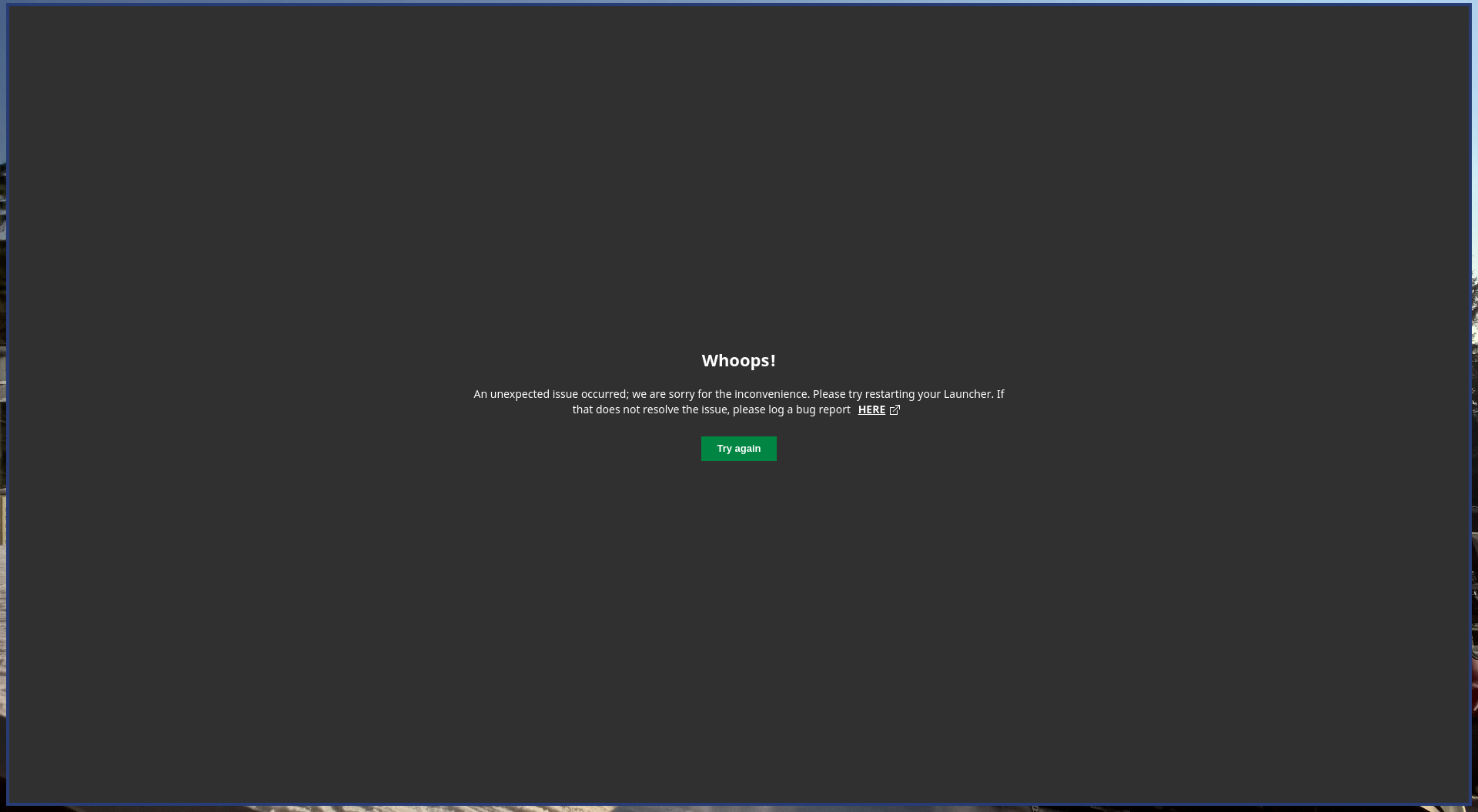 Upon loading up minecraft, I will get a 'Whoops' (see attatchments) with no other information there.