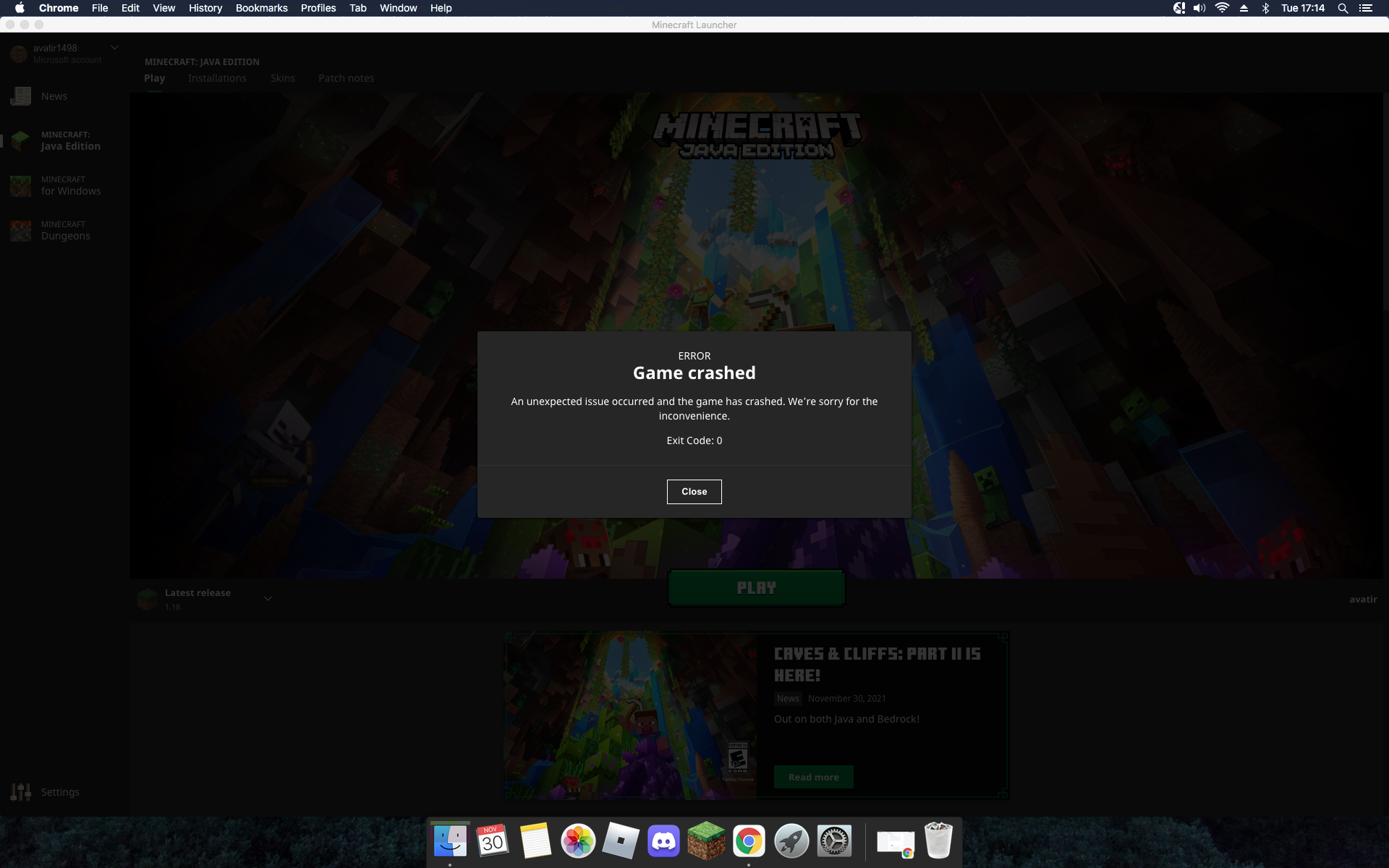 I have the same issue. macOS 10.11.6. Updated to MC 1.18 Click PLAY then the game crashes with an error code: 0.