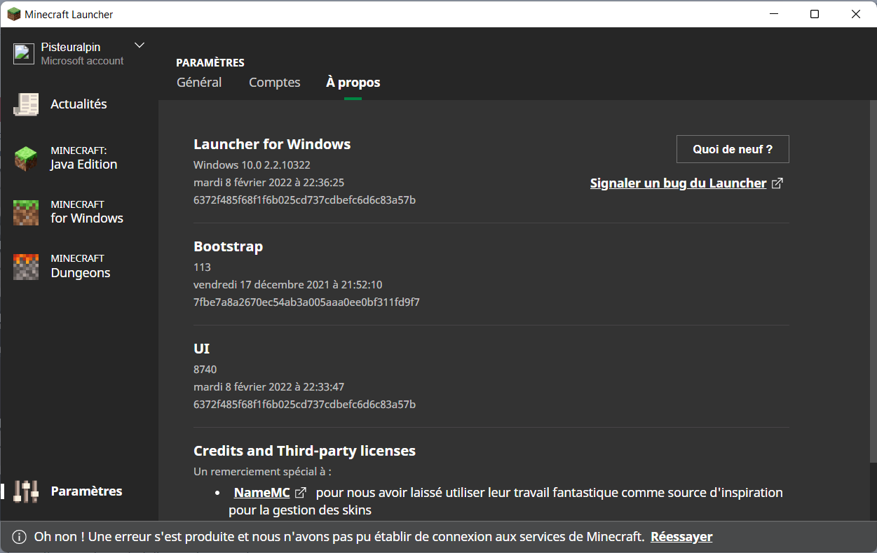 I can't use the new launcher (on ms store) because I can't connect to my microsoft account. When I click on connect with ms account it opens a window with my xbox account, I click on play and it fails, at the bottom of the launcher it's wrote "Oh no! An error has occurred and we couldn't connect to Microsoft services". The problems happens for 3 months, so I use the old launcher. Please solve the problem.