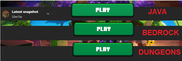 The play buttons on the 3 different game pages don't match properly in size. While the play button from dungeons and bedrock are the same size, the java play button is slightly bigger. (See attached image)