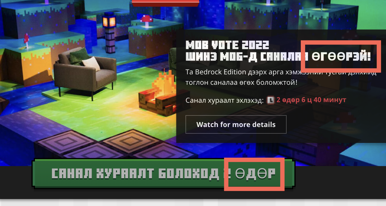 In the Minecraft Launcher, the play button on the main screen as well as the summer announcement do not support some glyphs for the text written on it. As a result, it looks aesthetically poor.