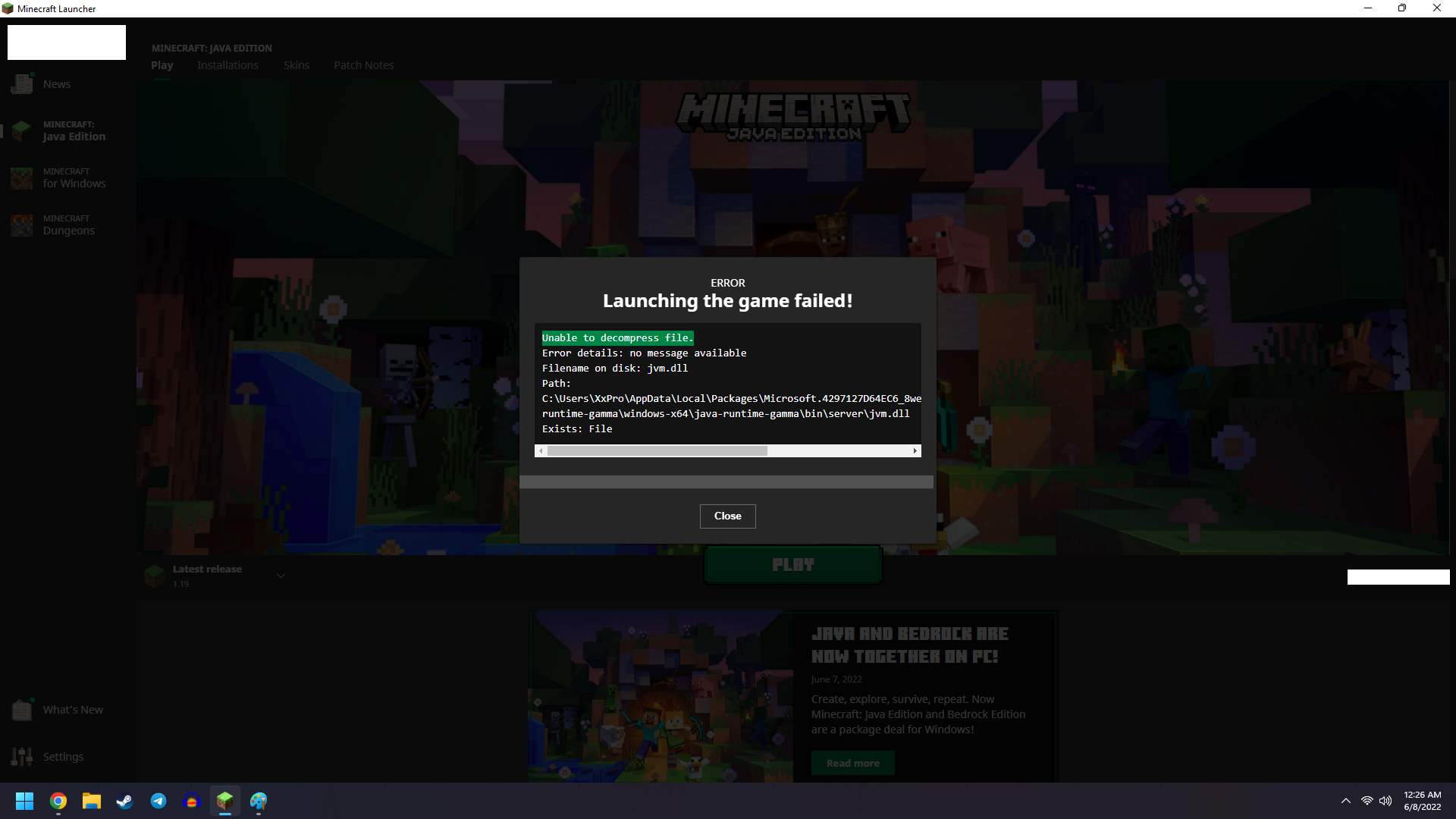 Exists: FileI have tried all listed solutions above, all versions of the Minecraft Launcher for PC (Win 10/11, Win 7/8, executable and msi installers), Uninstalled/Deleted all relevant files, but still can't get any recourse.