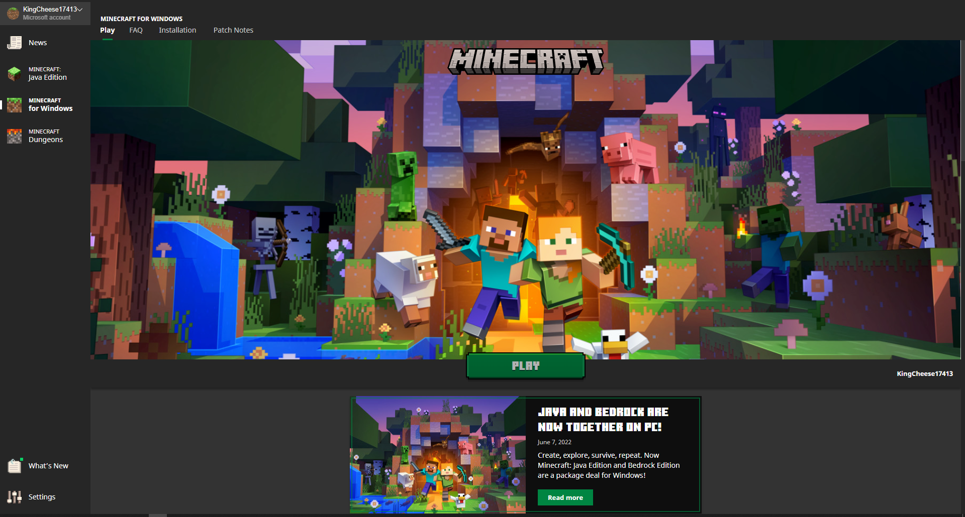 I tried installing Windows Edition with old launcher and it claimed it was incompatible. So I installed the new launcher off of the Microsoft Store and it allowed me to click the install button and choose the drive I wanted it to be installed on. The first time I made an attempt to install it, it said error inside the loading bar at the bottom. All attempts after this have resulted in the loading bar not appearing at all and the "Play" button being disabled. I've uninstalled both launchers and reinstalled the new one. Made sure I was signed in to Xbox and the store. Nothing I have tried has shown anything new.