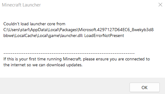 Error message from launcher saying "couldn't load launcher core". It says it was due to a corruption, so I reinstalled the launcher and keep getting the same error message.