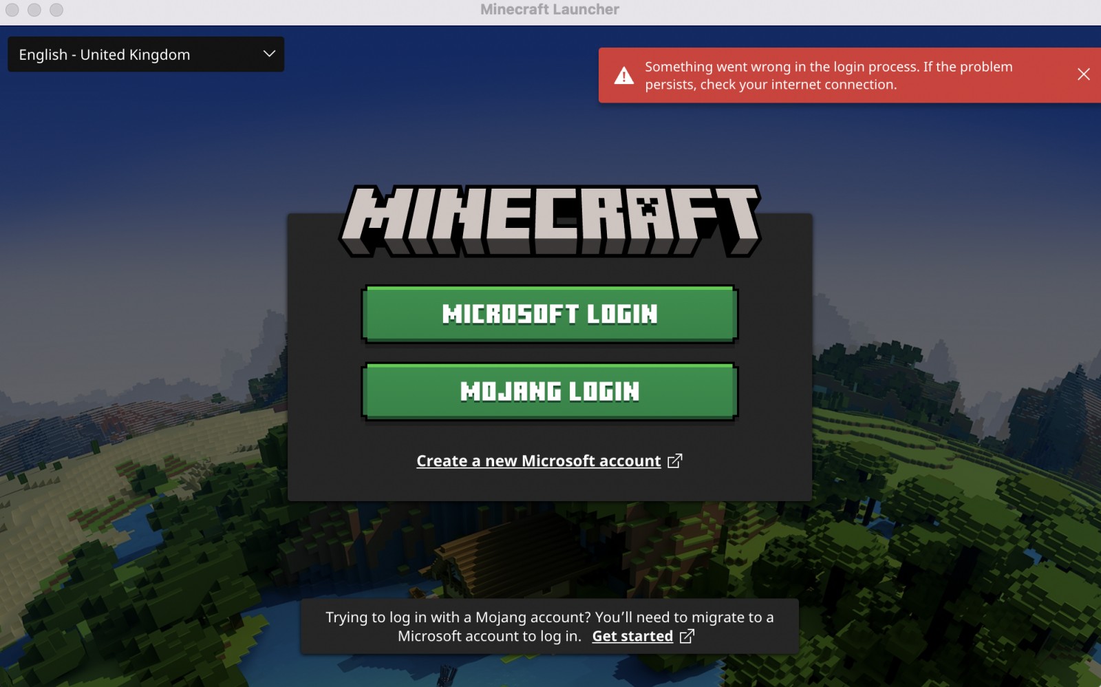 The problem began immediately after I migrated to a Microsoft account. The account migration was successful, but the error message appears once each time I try to log in using the launcher on my Mac (after entering my username and password).