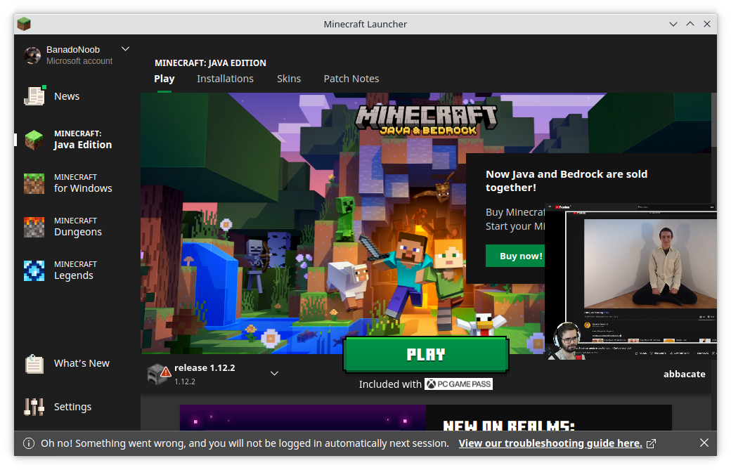 Hello, I'm having a problem on my Ubuntu regarding the Minecraft launcher, when I installed the launcher and connected to my Microsoft account (I don't know if this information makes any difference), I received an error saying that I will not be automatically connected on the next application launch , I have already tested 2 Microsoft accounts and both have the same problem, I wanted to know if anyone is having the same problem and if anyone has managed to find a solution to this problem.