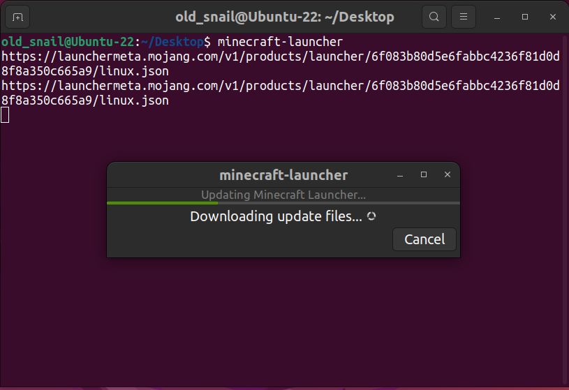But when I start launcher on Ubuntu 22.04 again, it showed a link twice in terminal and started updating, when it updated half, it seemed stop, after a long time, the window was closed by itself and failed in updating again! At last, it left a sentence in terminal: