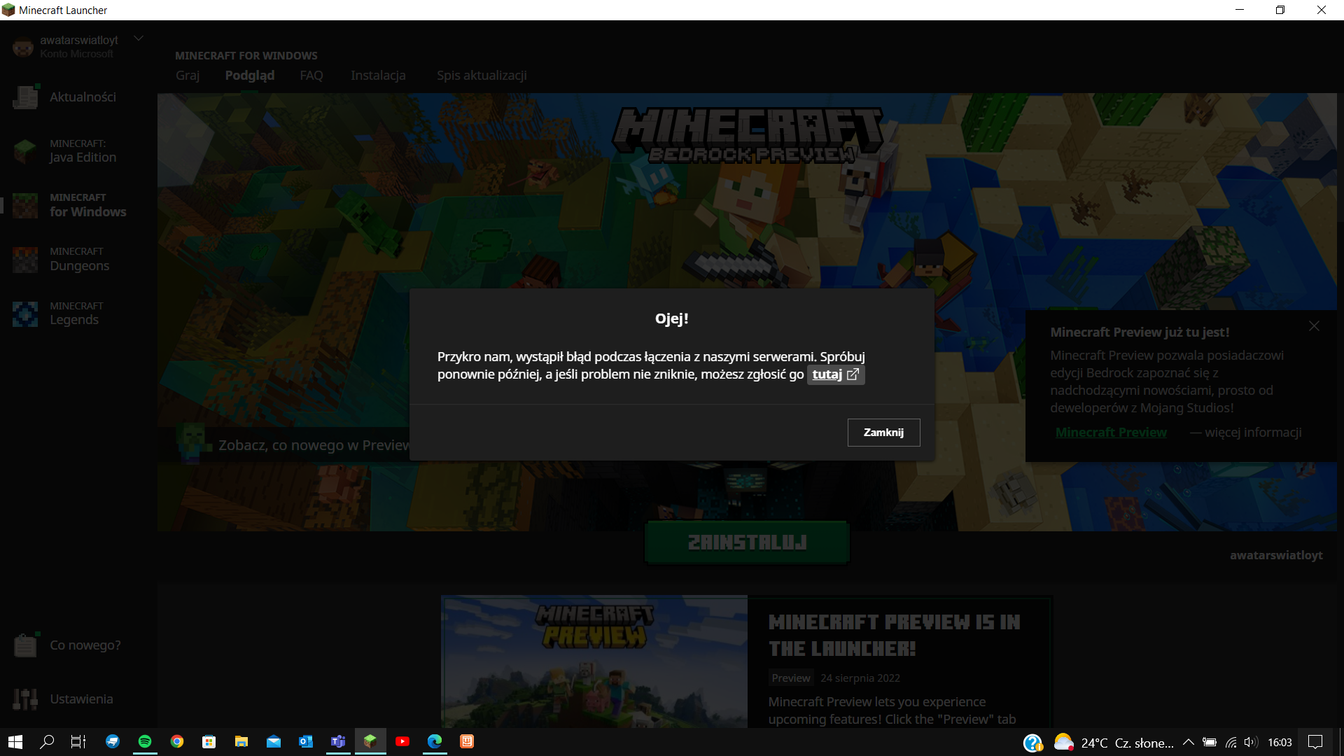 1. click install for Minecraft previewΒ