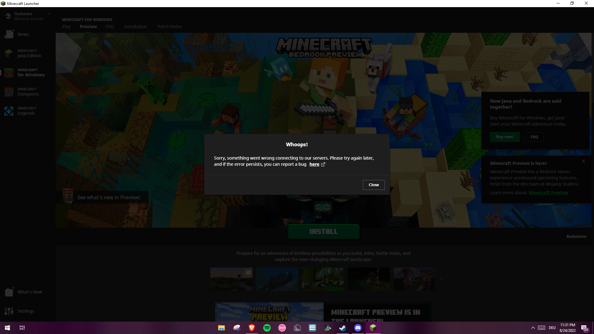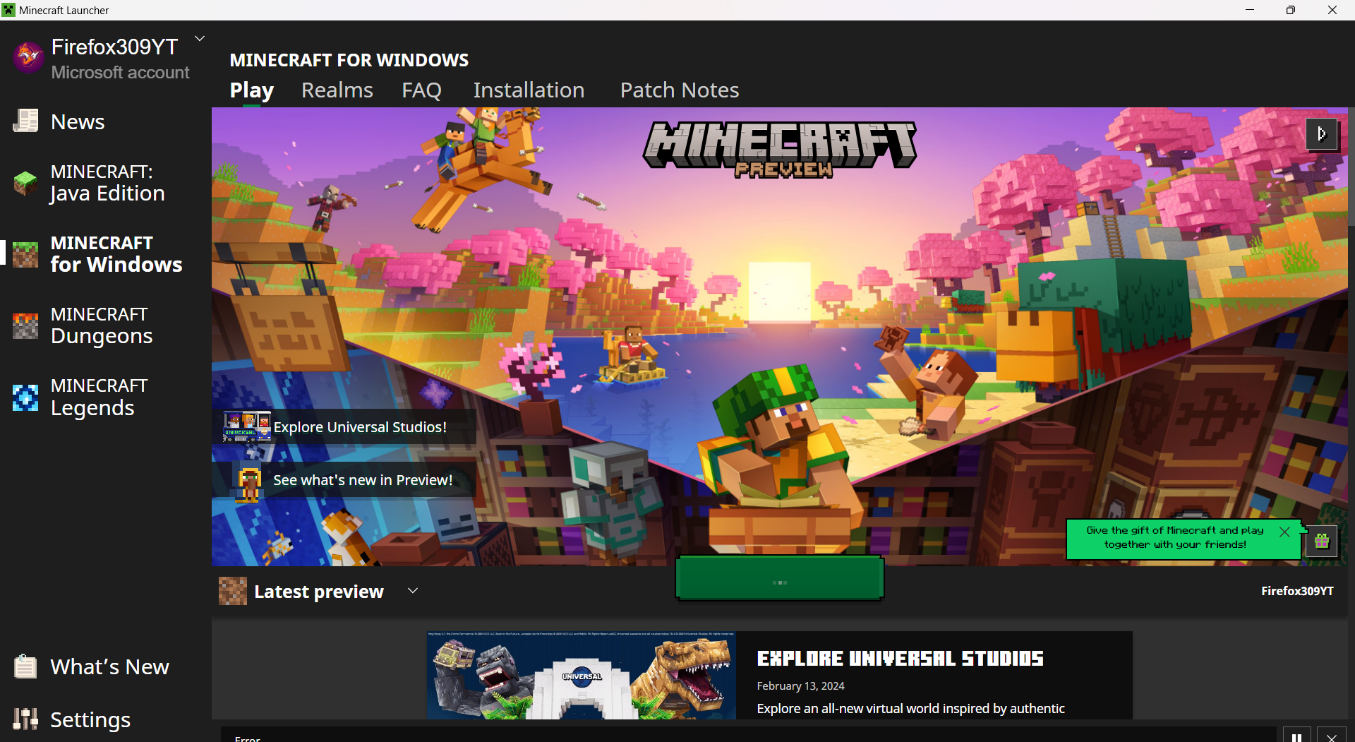I tried installing Minecraft Preview and it always gives me the following error message.