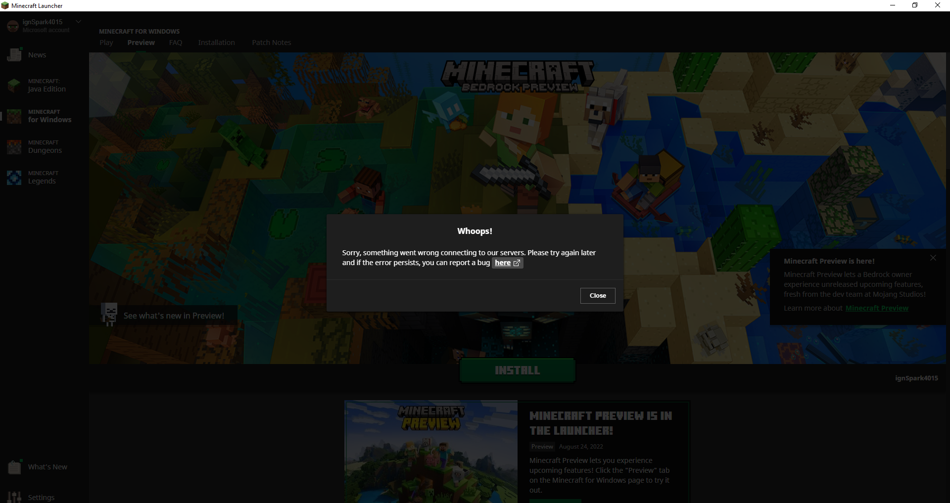this happens when i try to install minecraft preview