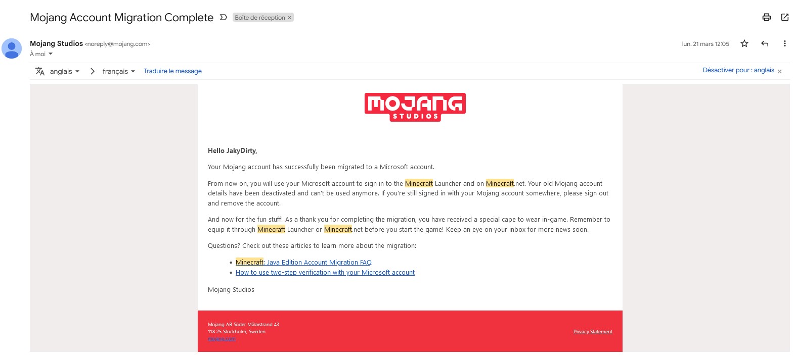I connect to the launcher via my Microsoft account, not my mojang account anymore.