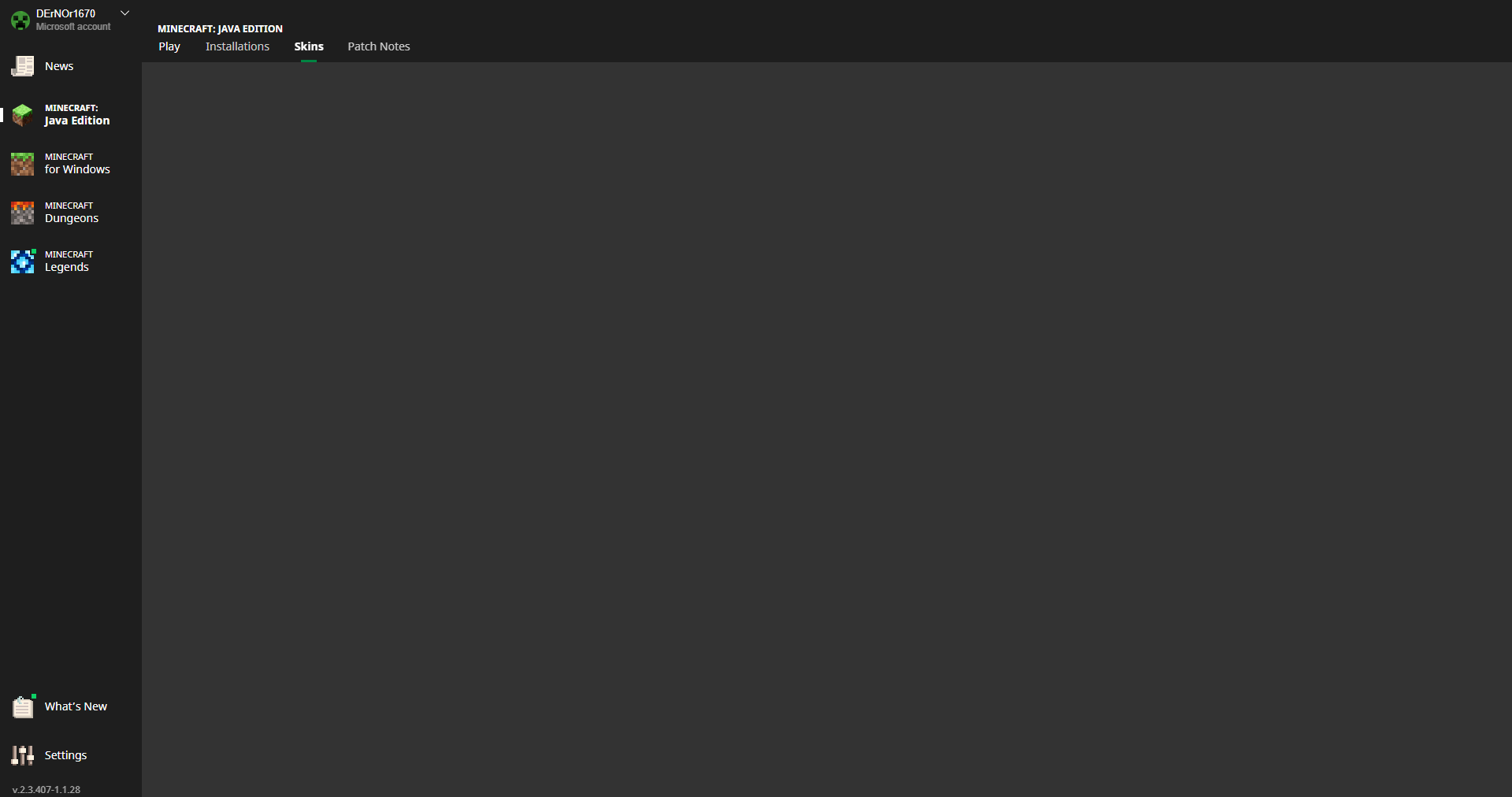 When i try to open category "Skins" In Java edition launcher, it just freezes forever.