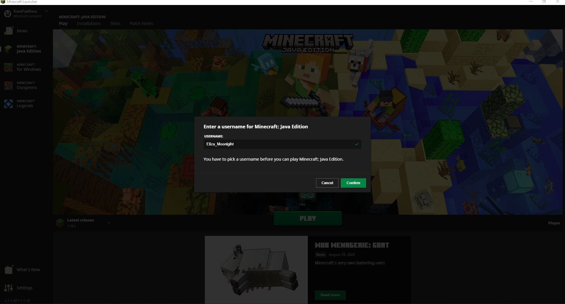 I installed the official launcher, logged in with my Microsoft Account, and when I tried to start the game to play, it asks me to pick a username, I enter my desired user and this ongoing error appears: (See picture 3)