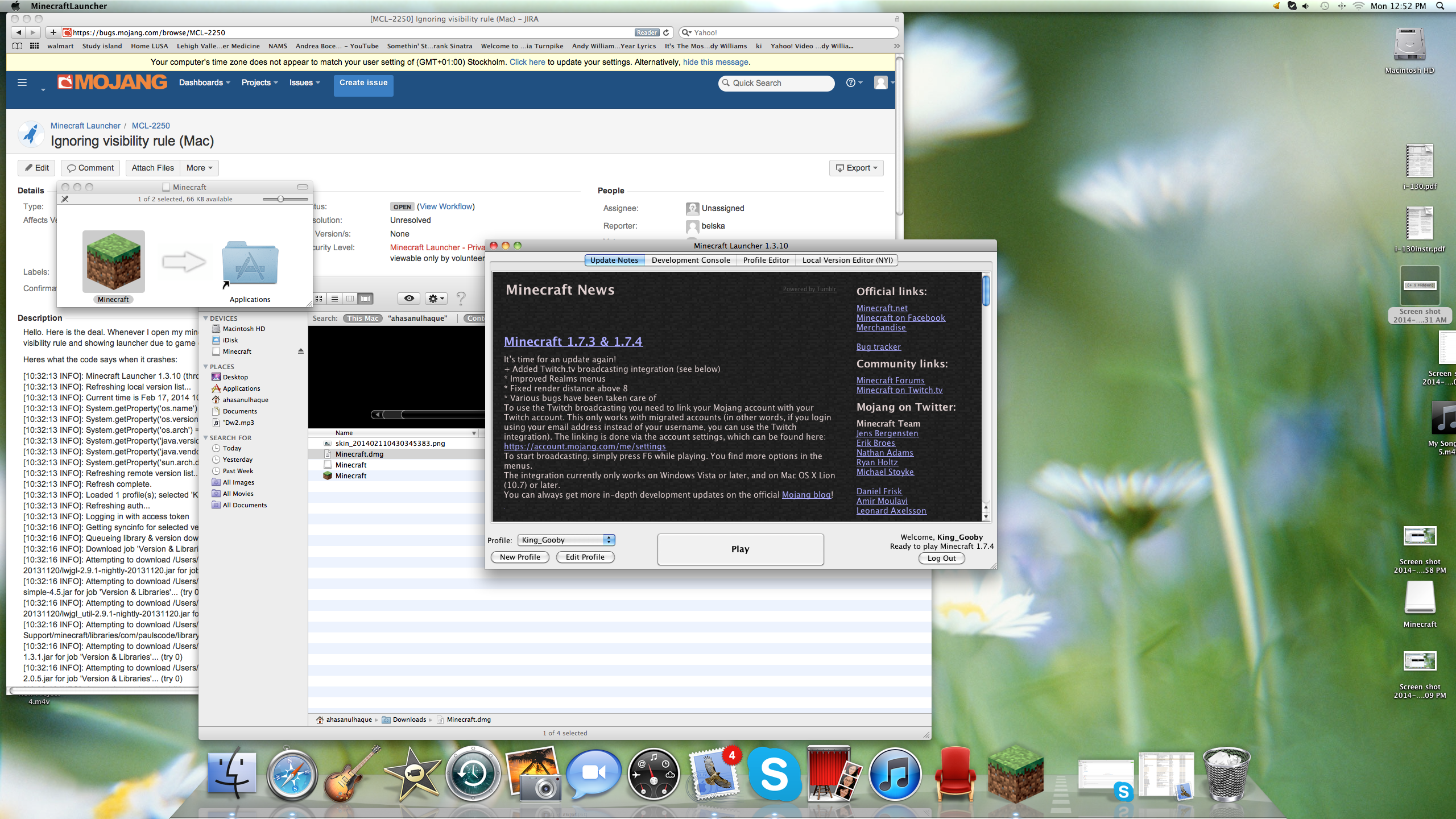 (2. When I select it it shows disc and game. Drag to applications. Before when I played minecraft I had never dragged it into the app folder and it still worked. I dont know if I should do it now?