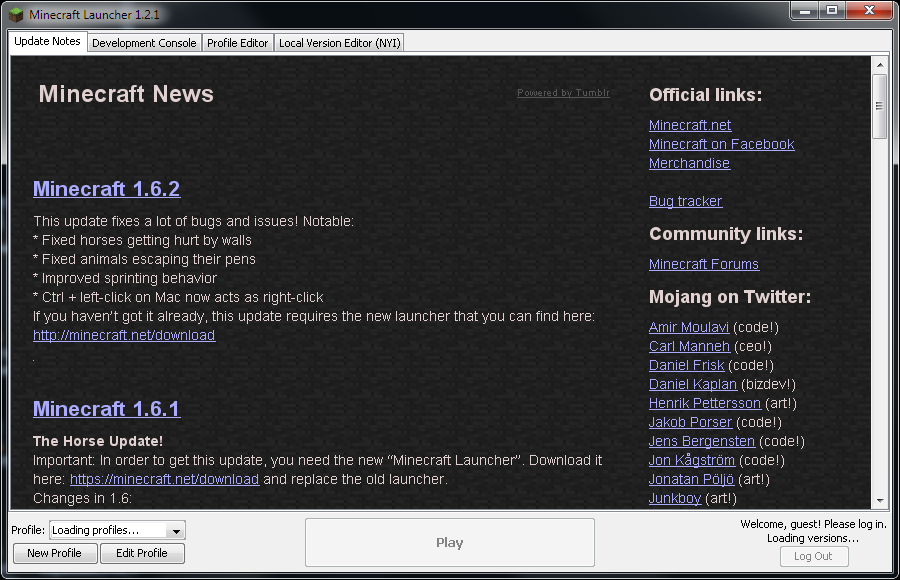 Job 'Resources' finished successfullyThe launcher is way faster than 0.7.* but the version menu is frozen and play button grayed out, until the tumblr page loads, there for you cant start the game until then.
