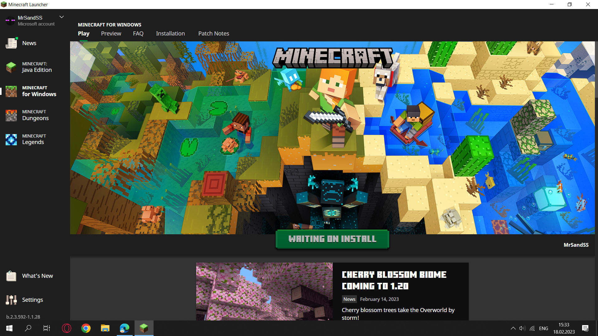 Hello. I can't install Minecraft Bedrock in the launcher. After clicking on the Install button, the button becomes non-clickable and the label changes to Waiting on Install