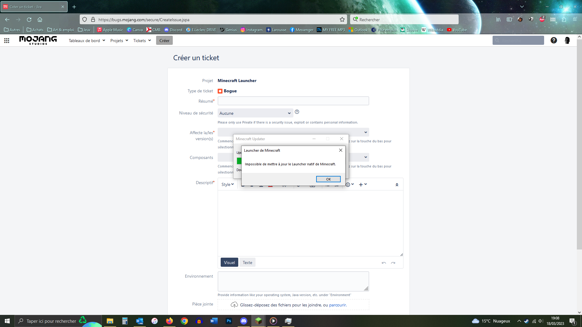 When I launch Minecraft, an error message appears after some 5 or 10 minutes "Unable to update the Minecraft Native Launcher." I tried to desinstall and reinstall the game and downlaod last java update but it did nothing. Can you help me with this issue ?