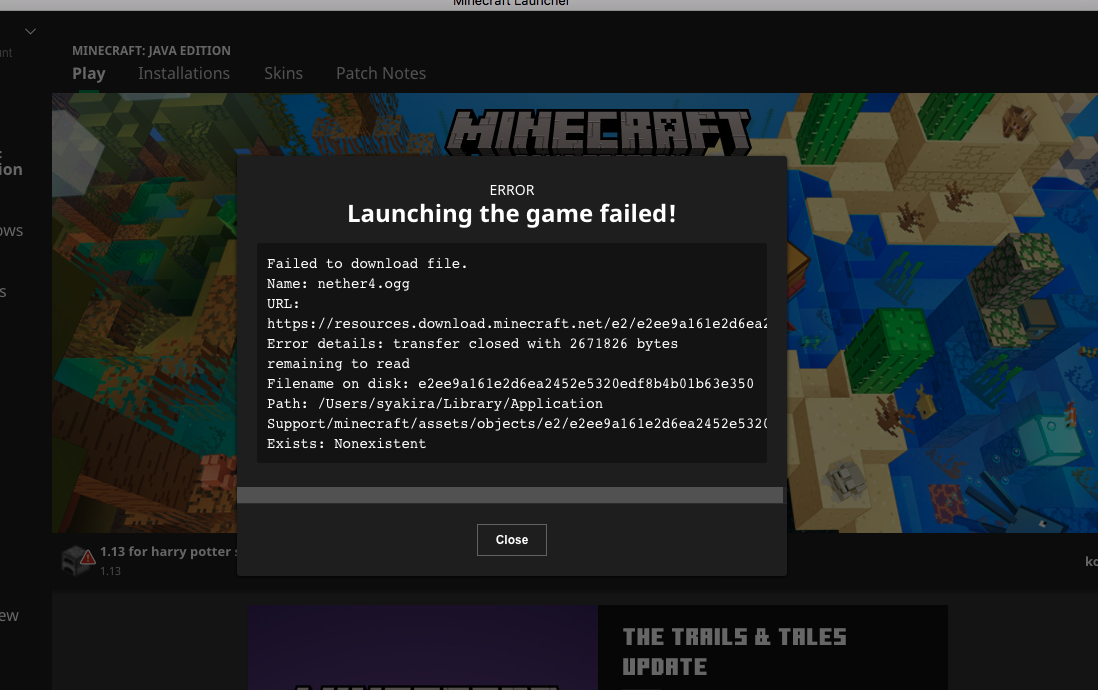 i try deleting minecraft file in library file, it works ! but after i close minecraft and open it again, the same problem happens.