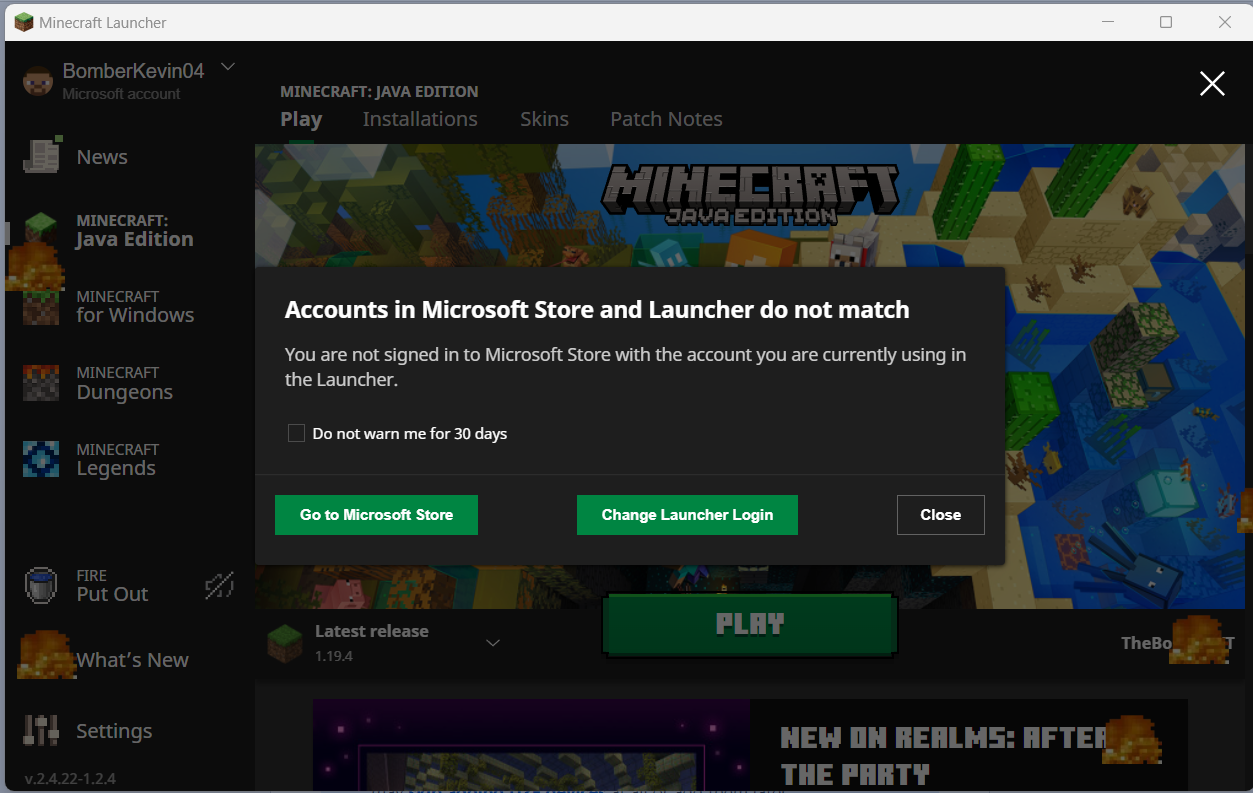 My launcher keeps saying that I am not signed in to Microsoft store with the account that I'm currently using the launcher when I am actually using the same account.