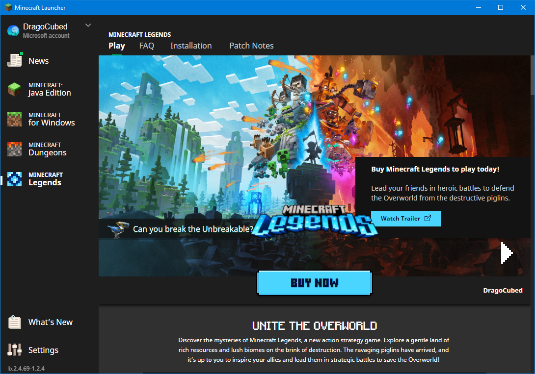 Minecraft Legends page