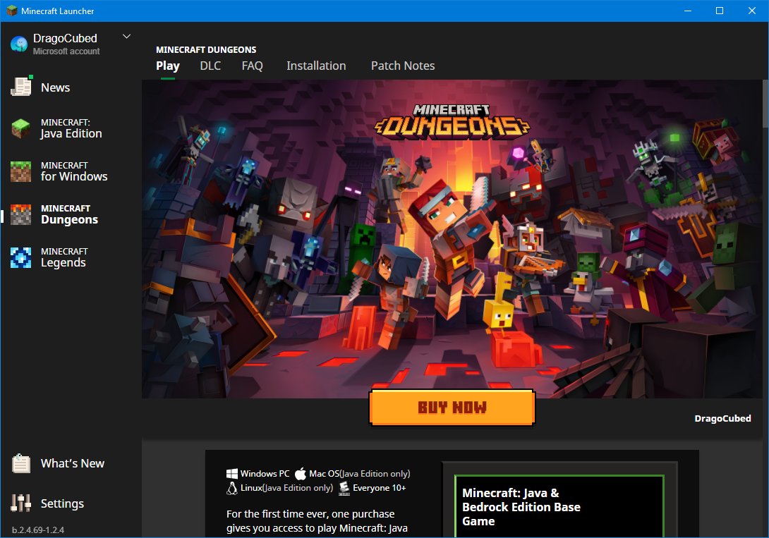 Minecraft Dungeons page
