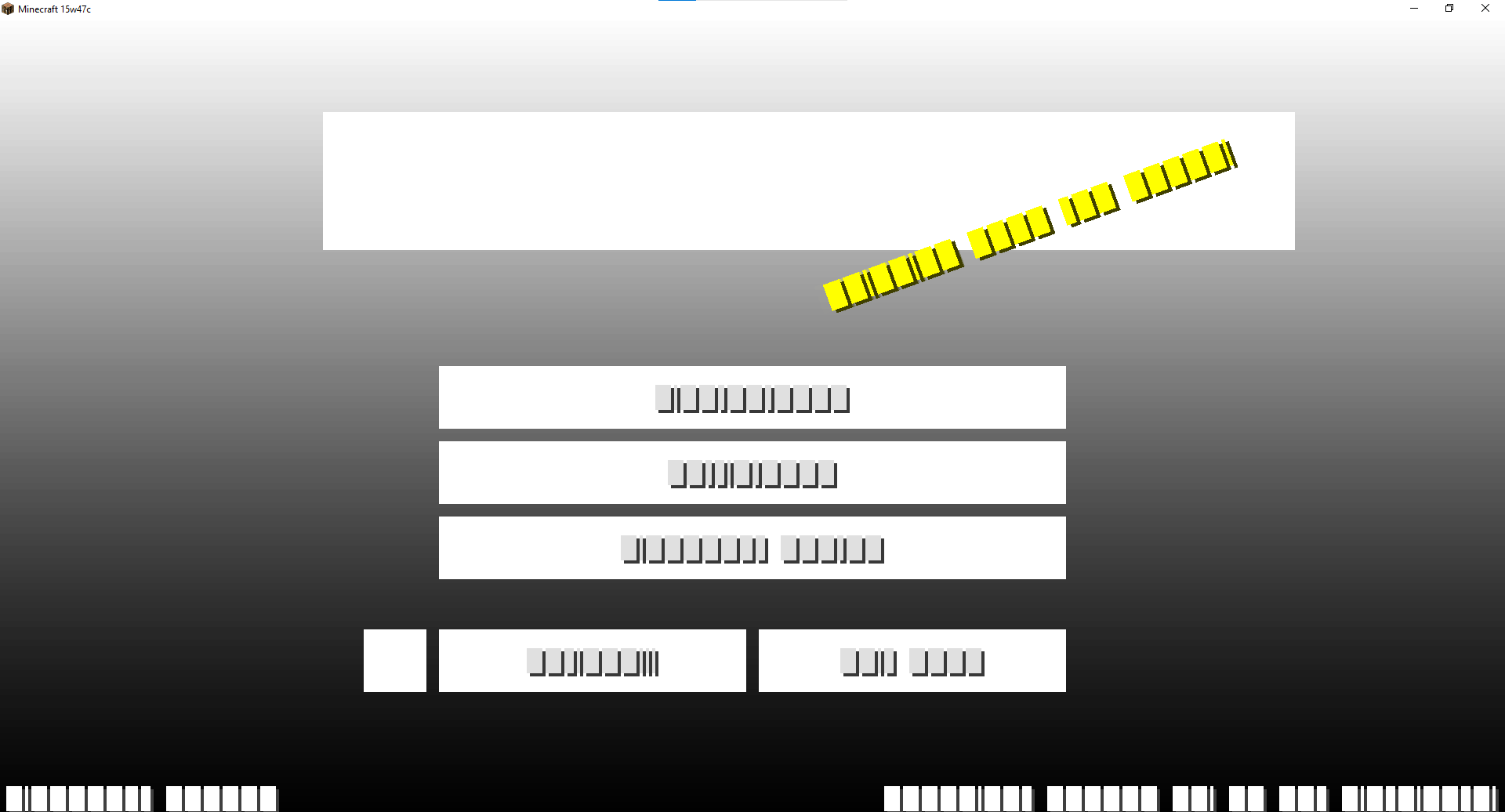 Hi some time ago i opened a version 15w47c to play but when minecraft load the game it bugged the menu screen is broken and when i launch my world it looks the same all blocks are ghosts i have an legal xray for caves every block has different texture than normal and i can't do anything with it.