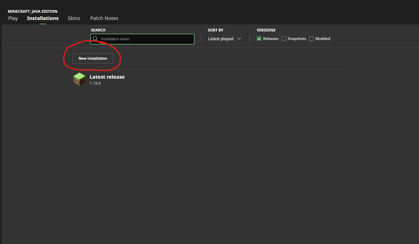 You have to install them by clicking "installations" on the top of the launcher, then you click "new installation", then select what version of Minecraft you want to play.