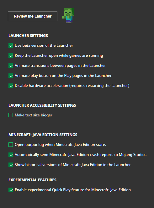 I enabled the launcher's new Quick Play feature, but opened worlds and servers are not appearing. In fact the quick play feature is not showing at all despite my launcher, java version, and games all being updated.