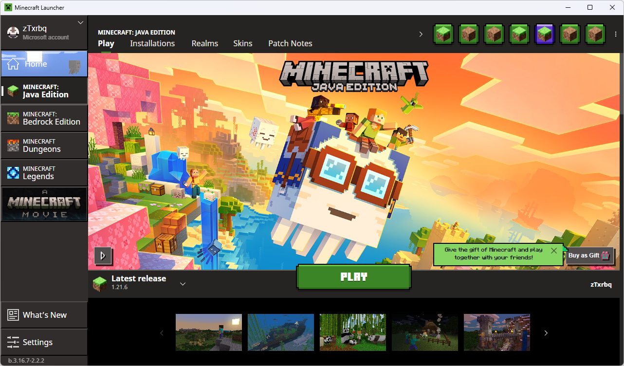 In the launcher there were suddenly 7 icons in the Quick Play bar, two of them were "fake" and clones of real existing ones, identifiable by the missing tooltip when hovering over them. They remained when switching tabs within the Java Edition page, but disappeared after changing the language in the settings.