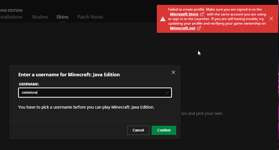 I can't create an account in the minecraft launcher. He asks me to enter a nickname, I write and an error immediately comes out. In the web version, nothing can be configured and changed at all. I have an Xbox Game Pass Ultimate. there is no solution to this problem anywhere