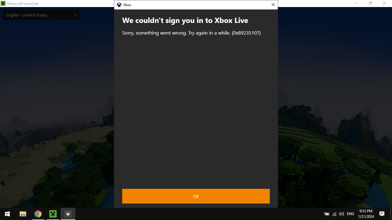 Mojang and Xbox please fix this annoying error when switching to accounts on the Minecraft Launcher.