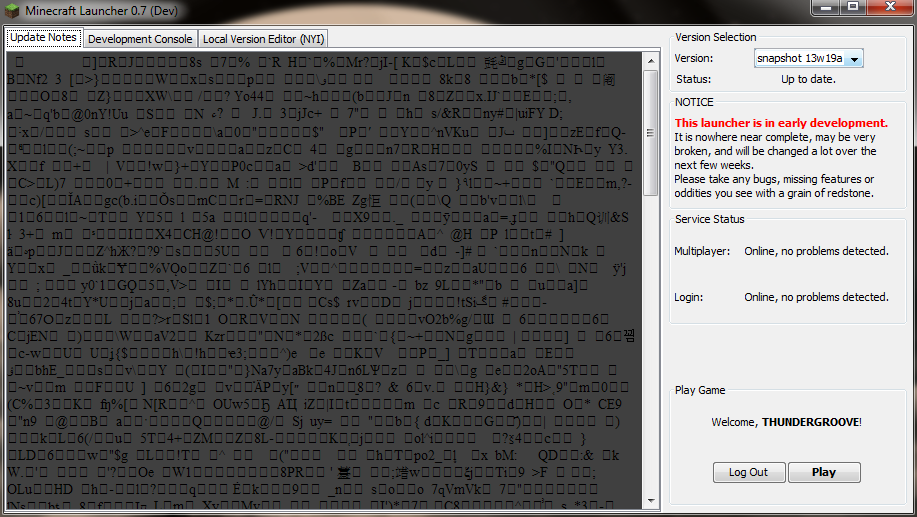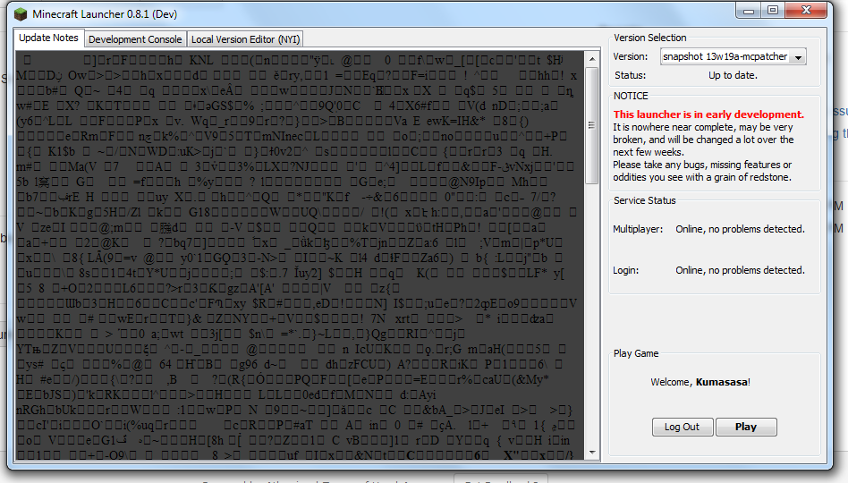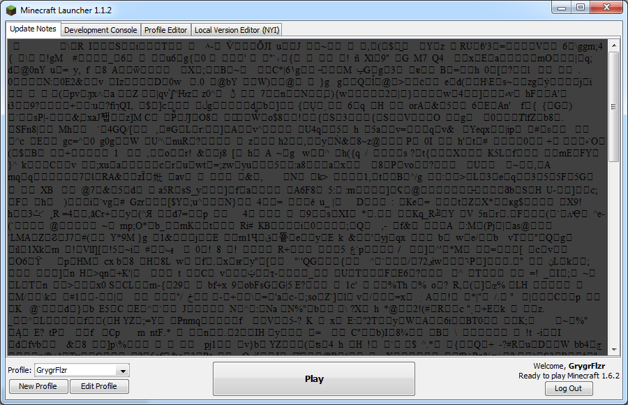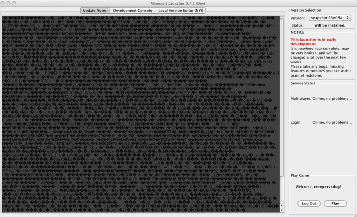This bug is a glitch in all Minecraft launcher versions since 0.7.1, where random code shows up in place of the update notes.