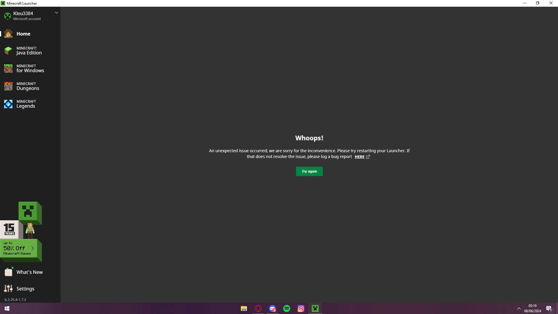 I tried to restart the laucher, I tried to uninstall and reinstall the laucher, I tried to search why this problem is occurring, but I couldn't find the problem