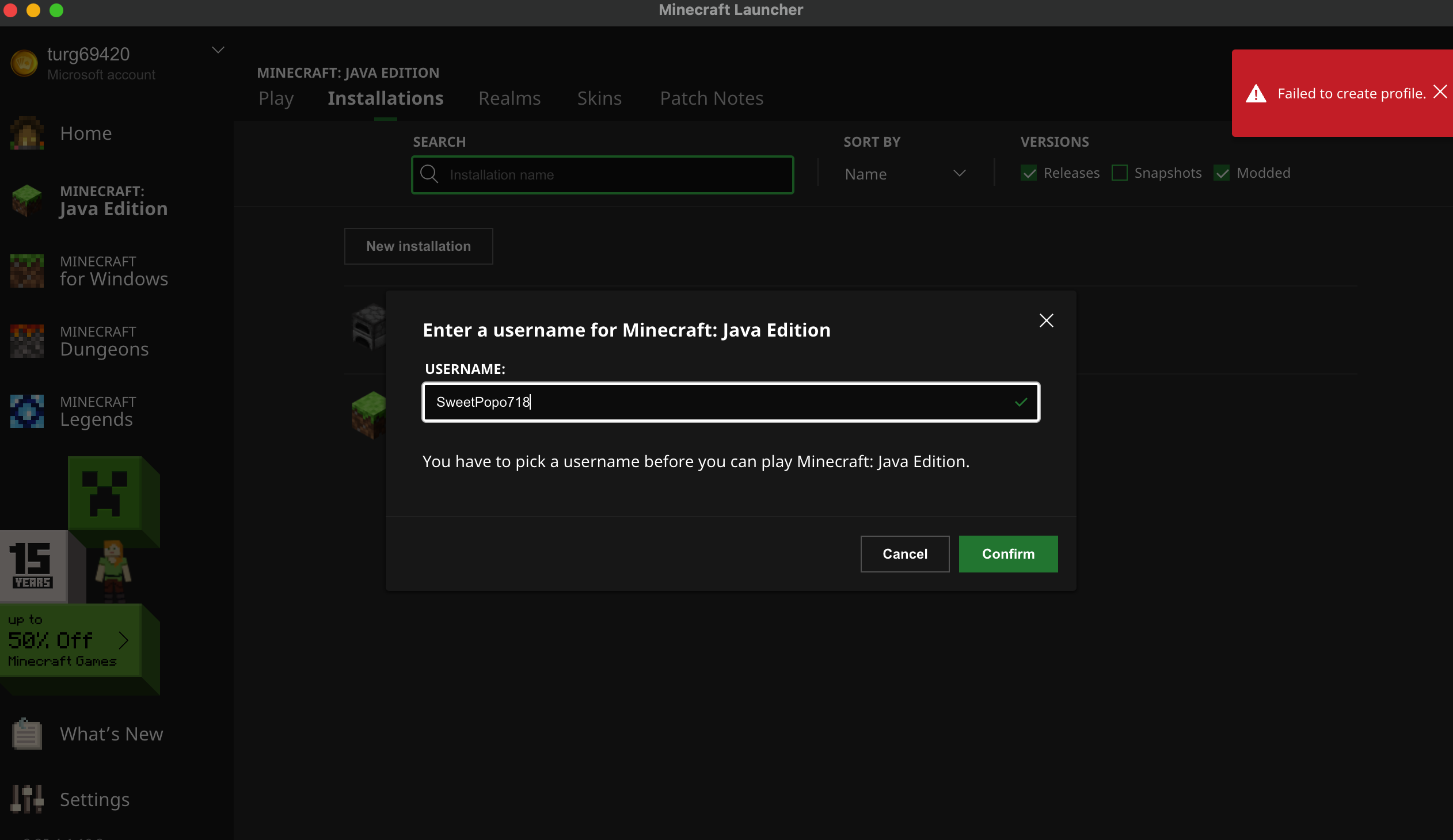 I'm not the best with this aspect of technology so please forgive my ignorance. That being said, let's just jump right into it. I recently purchased Minecraft, I'm on an Apple laptop(the MacBook air with the m2 chip). I created a Microsoft account, made sure I had an Xbox live profile, the whole 9 yards, I have java downloaded and up to date. So I download Minecraft, boot up java edition to get on a realm with friends and this happens. I have to have a username for java edition, I tried a random one, I tried the one that corresponds with my xbox live gamertag. What do I do to fix this?